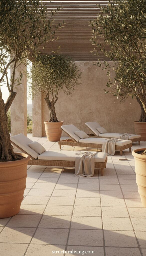 The incorporation of stone accents isn’t just practical; it also elevates the overall design aesthetic. The stone table invites conversation and brings people together, embodying the spirit of Mediterranean gatherings. Additionally, the careful choice of surrounding furniture ensures a cohesive look that flows seamlessly throughout the space.