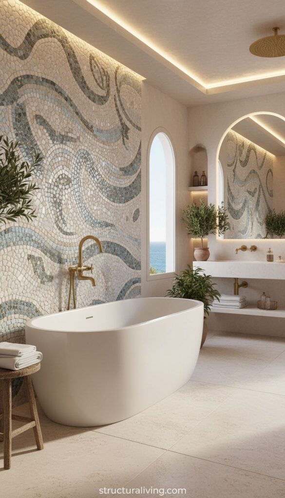 Using mosaic tiles for a statement wall can add a focal point to any room, particularly in areas like bathrooms or kitchens. The contrast between the bright tiles and the clean white walls creates a cheerful atmosphere that embodies the spirit of Mediterranean design.