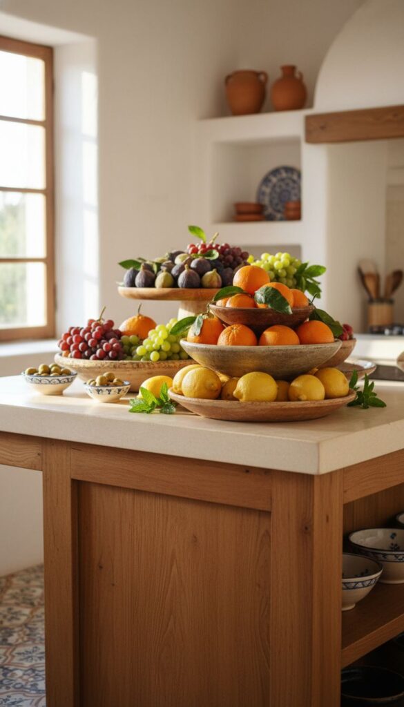 A decorative fruit display can breathe life into any kitchen, especially when it reflects Mediterranean charm. The vibrant colors and natural beauty of fruits make them a perfect centerpiece for a kitchen island.