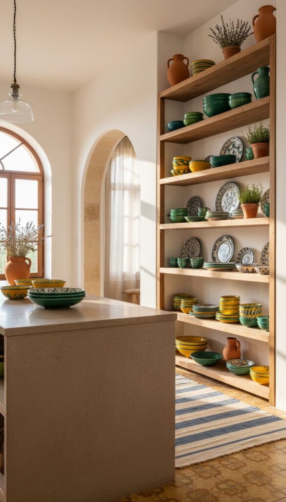 Open Shelving with Mediterranean Ceramics