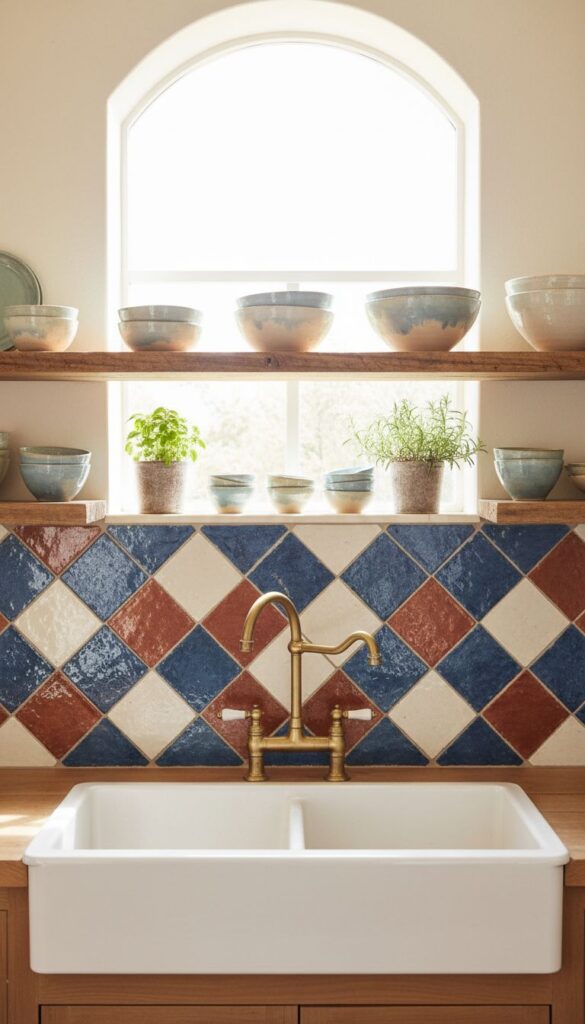 If you’re looking to spruce up your cooking space, consider geometric ceramic designs. They offer a fun and stylish way to enhance your kitchen while bringing a taste of the Mediterranean right into your home.