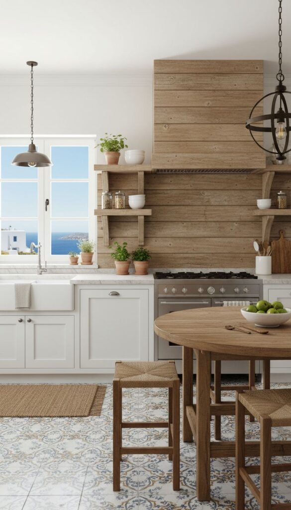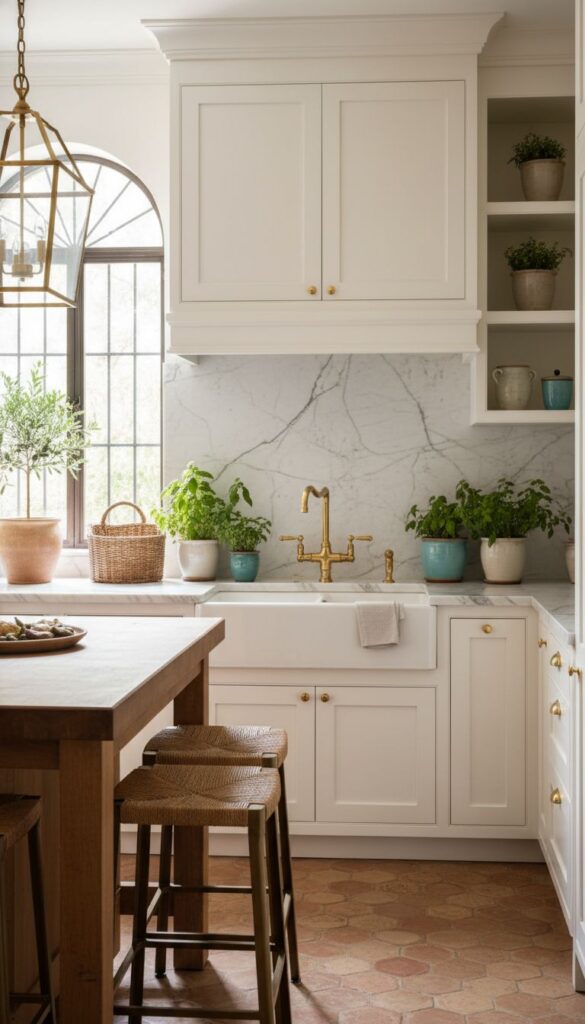 These tiles come in various patterns and colors, allowing you to customize your kitchen according to your taste. Whether you prefer something more subtle or a design that really pops, there’s a cement tile out there for you. They also pair well with natural elements, like the potted plants in the image, enhancing that relaxed Mediterranean vibe.