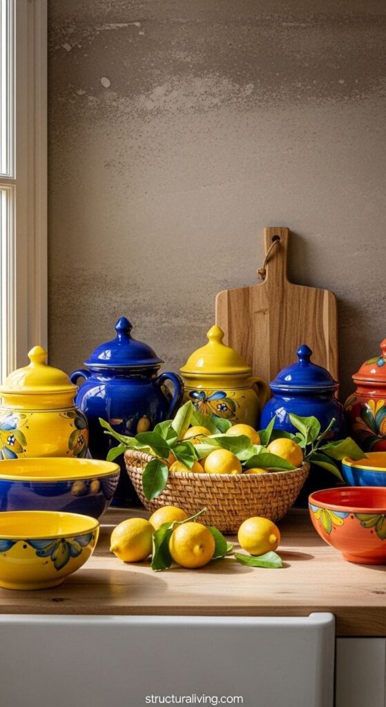 Colorful pottery and decor elements in a Mediterranean kitchen