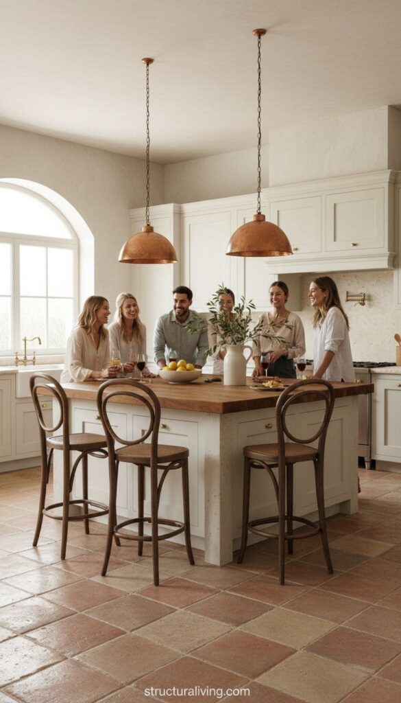 Bar stools are more than just seating; they can transform your kitchen into a lively gathering space. In a Mediterranean kitchen, they play a key role in creating that inviting feel.