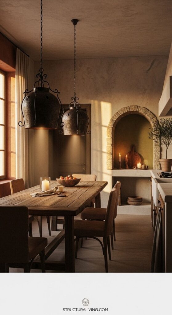 Consider using lantern-style lights or fixtures with wrought iron accents. These elements complement the natural materials often found in Mediterranean decor. Whether you choose a single pendant or a cluster of lights, the goal is to create a welcoming environment.